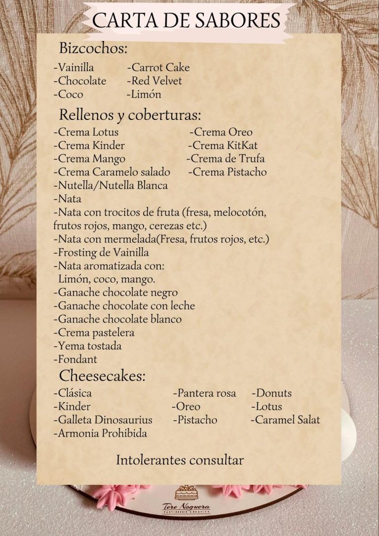 Descubre el sabor y la magia en cada bocado, En Tere Noguera Pastelería Creativa te ofrecemos una variedad de pasteles únicos, elaborados de forma tradicional con los mejores ingredientes y un toque de creatividad. ¡Deja que endulcemos tus momentos especiales!