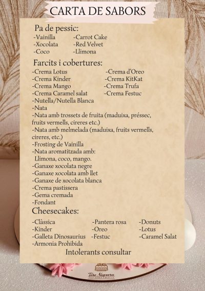 Pastís bàsic (+3 €) o personalitzat (segons disseny)
