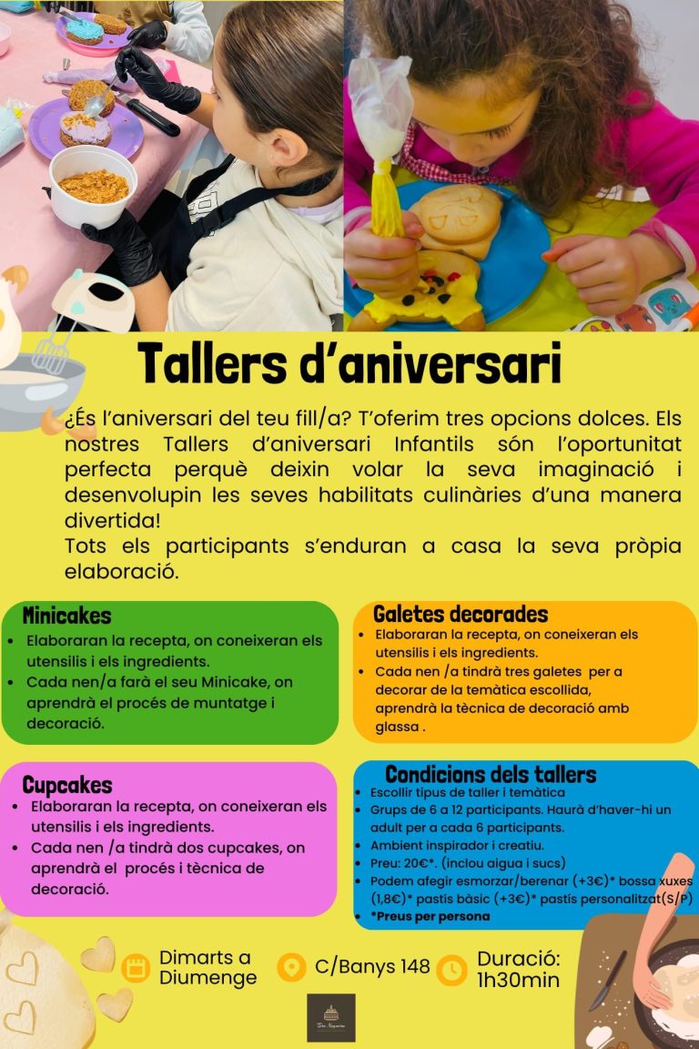 Als Tallers d’aniversari infantils de Tere Noguera Pastisseria Creativa convertim el dia del seu aniversari en una experiència dolça que recordaran sempre 💛